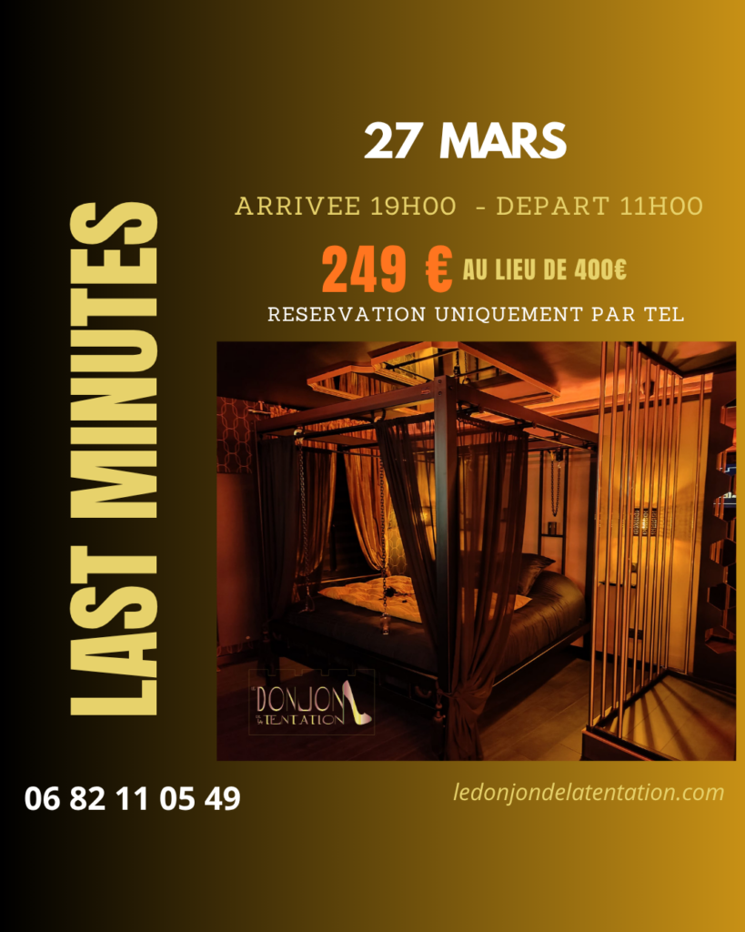 Plongez dans l’univers envoûtant du Donjon de la Tentation et choisissez l’expérience qui vous ressemble. Que vous optiez pour une parenthèse séduisante d’un après-midi, une nuitée pleine de mystères ou une immersion totale jour et nuit, chaque formule est conçue pour éveiller vos sens et laisser place à vos désirs. Offrez-vous un séjour où élégance, intimité et émotions fortes se rencontrent dans un cadre unique. N’attendez plus pour vivre cette aventure mémorable !