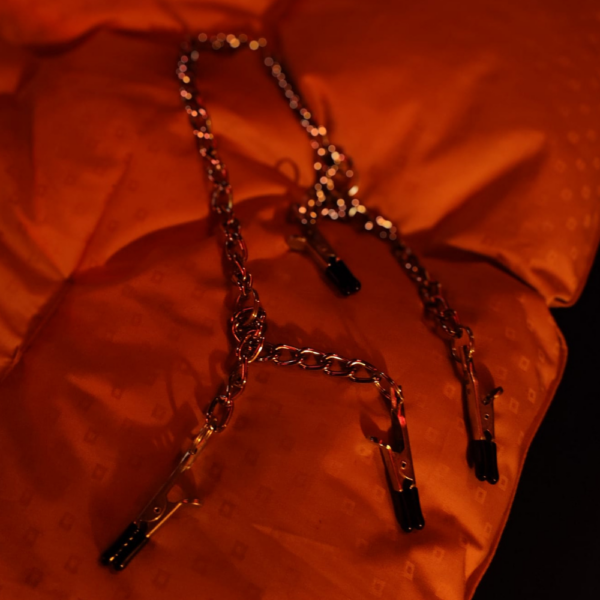 Au Donjon de la Tentation, la pince à tétons s’intègre dans une approche élégante et immersive. Elle n’est pas un outil de contrainte, mais un accessoire d’intensification sensorielle, destiné à explorer la sensibilité du corps avec finesse et attention.